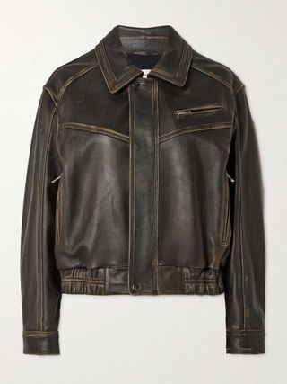 Clint Oversized Paneled Distressed Leather Bomber Jacket