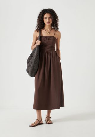 Air Flow Strappy Gathered Midi Dress