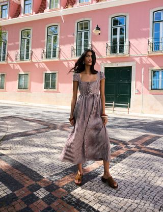Brown Gingham Heidi Midi Dress
