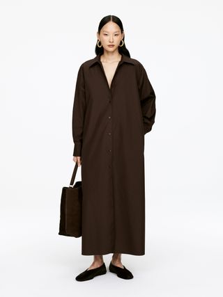 Asymmetric Poplin Midi Dress