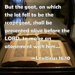 To accomplish this, the priest performed the ritual of the two goats. He sacrificed one goat to God. He recited the sins of the people over the head of the second goat and expelled it into the wilderness to carry away those sins.